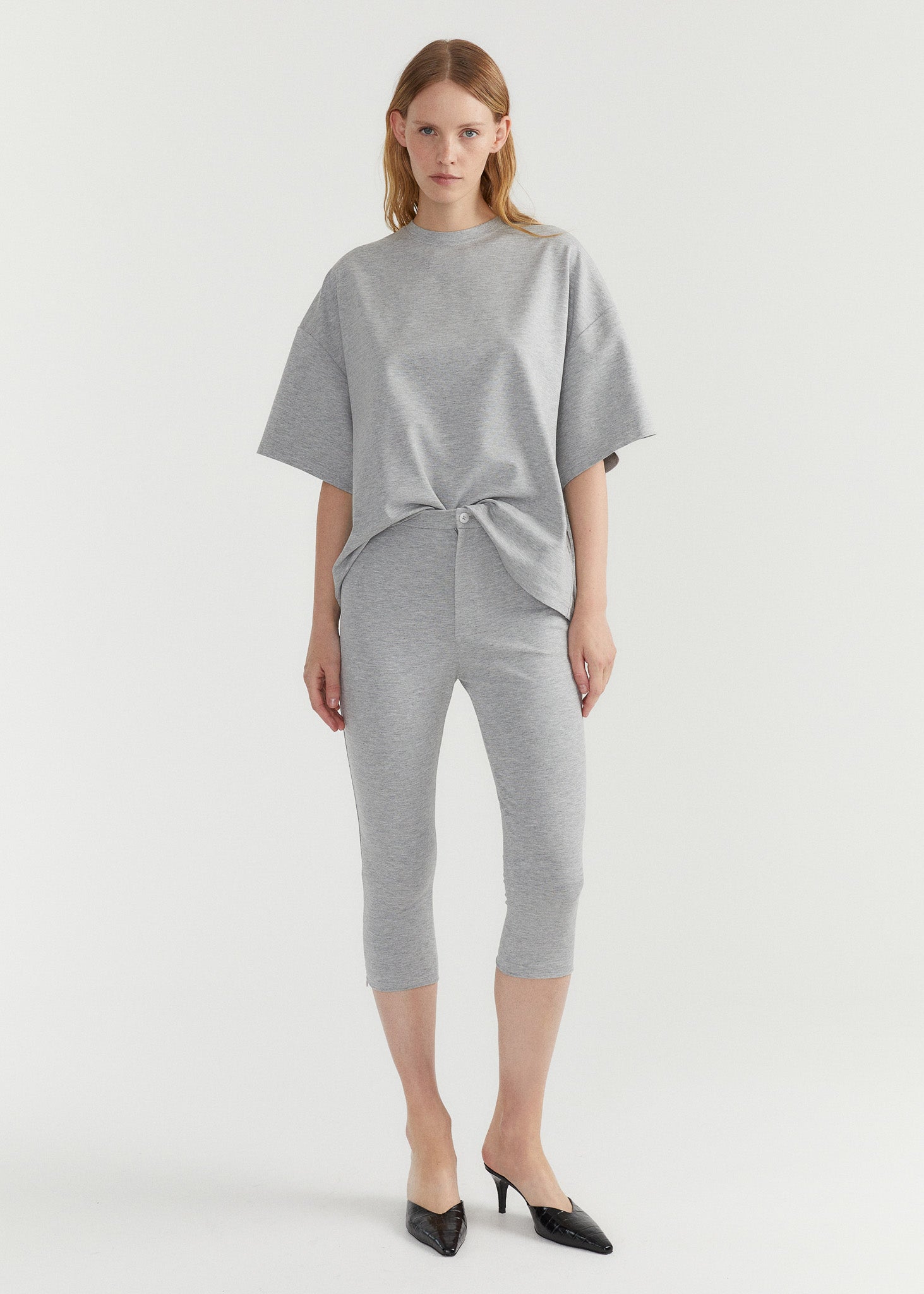 Iconic ZWINGENBERG high-waist leggings in capri length. THE CAPRI (1) is made in Germany from heavy 480g viscose jersey and can be worn open or closed at the hem thanks to 4 cm long zippers. THE CAPRI (1) has a tailored look thanks to the high-quality closure with button detail and concealed zipper. Nevertheless, the waistband is equipped with an elastic band at the back to ensure optimal comfort and sporty coolness.