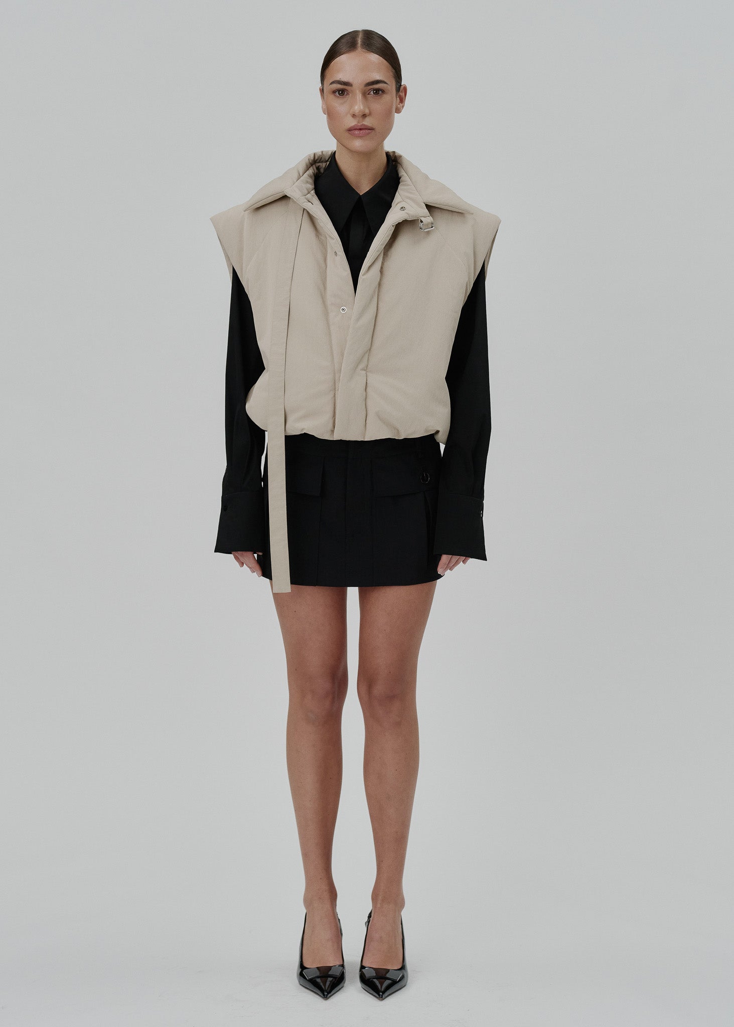 The Mini Skirt (1) with cargo details from ZWINGENBERG combines timeless tailoring and sporty details, blending elegance and coolness in a single garment. The mini skirt stands out with its hip-hugging and short fit. Made in our studio in Germany from 100% Italian virgin wool of the finest quality, it is the perfect companion to all ZWINGENBERG tailoring styles.