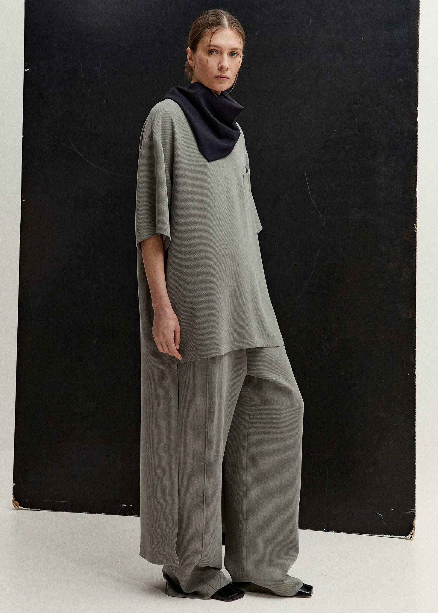 Das Tailored T-Shirt Dress basiert auf dem klaren, reduzierten ZWINGENBERG Oversized Shirt und wird durch eine verlängerte Rückenpartie neu interpretiert. Sorgfältig verarbeitet und gefüttert, mit seitlichen Taschen, einem verdeckten Reißverschluss im Rücken und präzisen Tailoring-Details. Dieser ZWINGENBERG Style ist für das Layering über Hosen konzipiert oder kann als Kleid getragen werden – und verkörpert die Essenz von ZWINGENBERG: klare Linien und contemporary Eleganz.