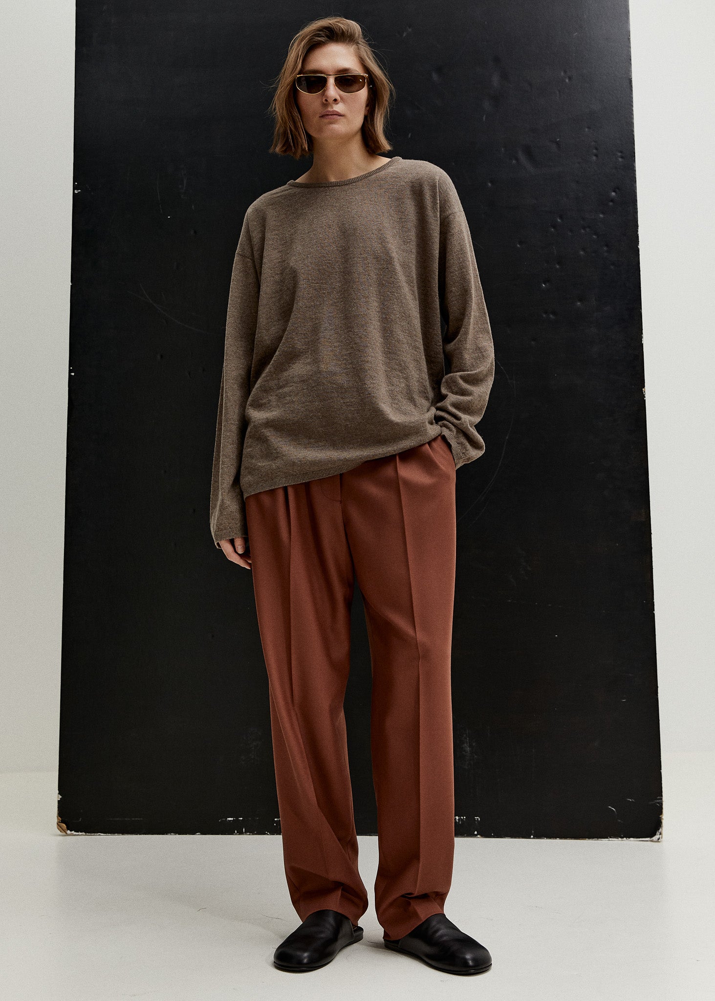 Locker geschnittene Hose mit zulaufendem Bein aus feiner Schurwolle. Inspiriert von klassischer Herren-Schneiderei, mit doppelten Bundfalten und einer entspannten, fließenden Silhouette. Ein verstellbarer Gürtel an der Hüfte und ein konisch zulaufendes Bein verleihen dem Modell eine moderne, selbstverständliche Eleganz. Abgerundet durch präzise Verarbeitung und den charakteristischen ZWINGENBERG Anspruch an Form und Material.