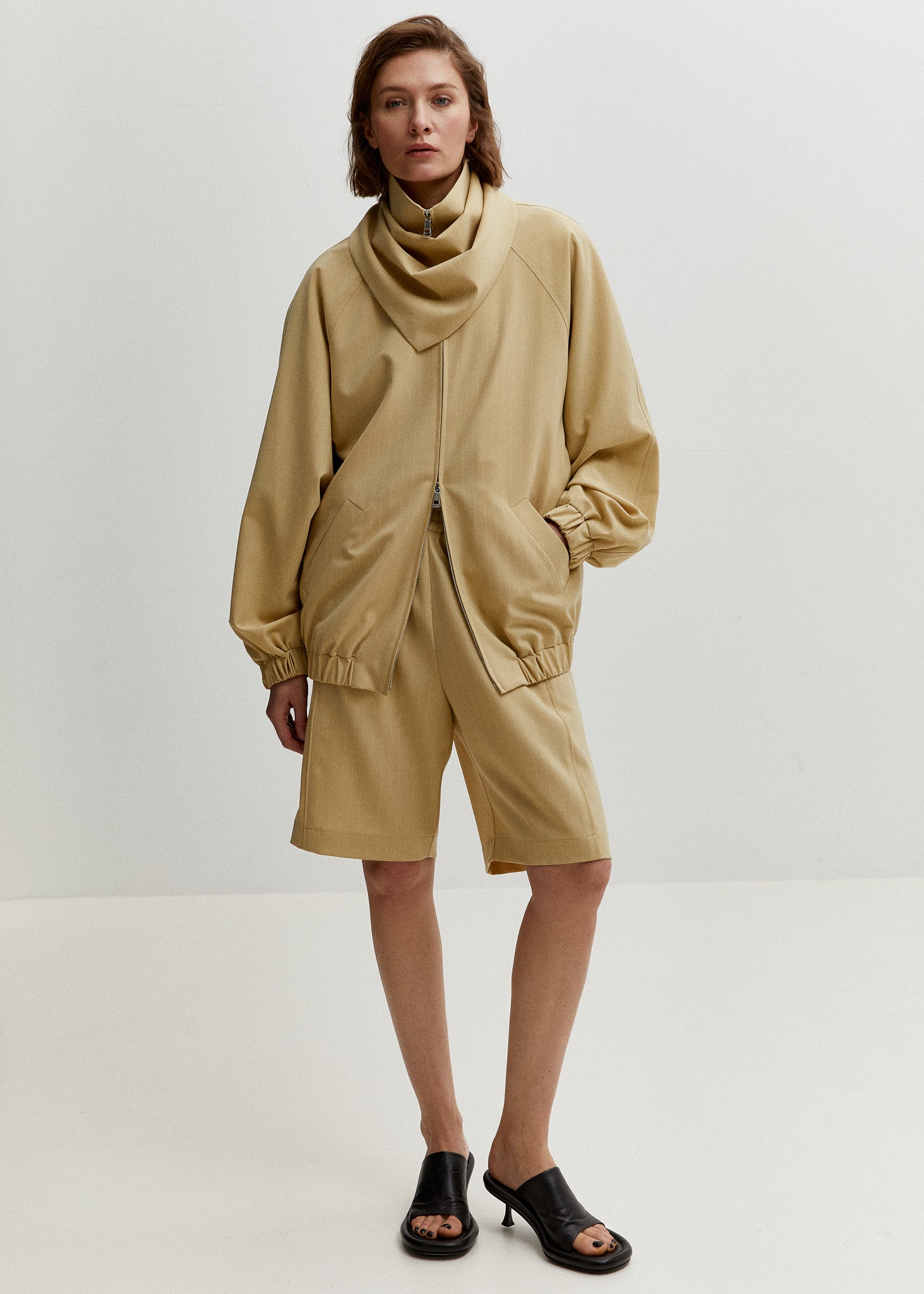 Die Tailored Track Jacket interpretiert sportliche Elemente auf präzise, moderne Weise. Gefertigt aus einem leichten Woll-Mix, vereint sie Leichtigkeit, Struktur und ganzjährige Tragbarkeit. Ausgestattet mit Zwei-Wege-Reißverschluss, maßgeschneiderten Taschen und einer klaren, entspannten Silhouette, lässt sich das Modell mit der passenden Bermuda, dem Tailored Long Skirt oder dem Triangle Scarf zu einem vollständigen Look kombinieren – oder als saisonübergreifendes Layering-Piece mit allen ZWINGENBERG Styles tragen.