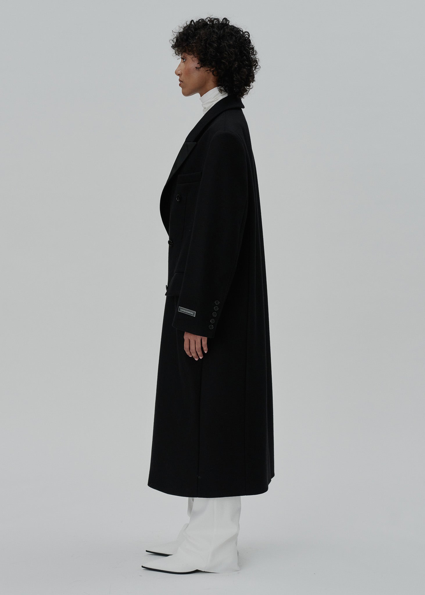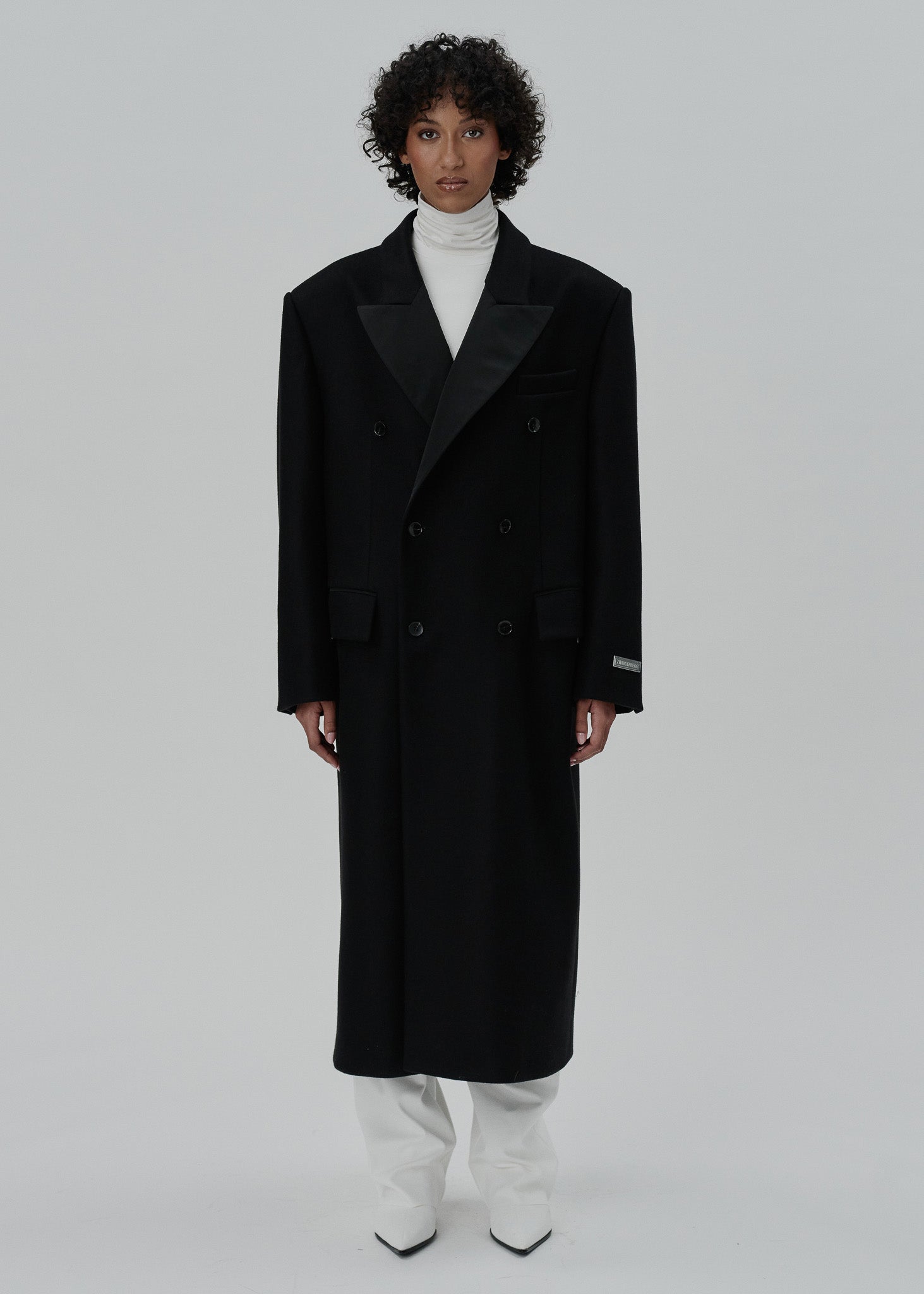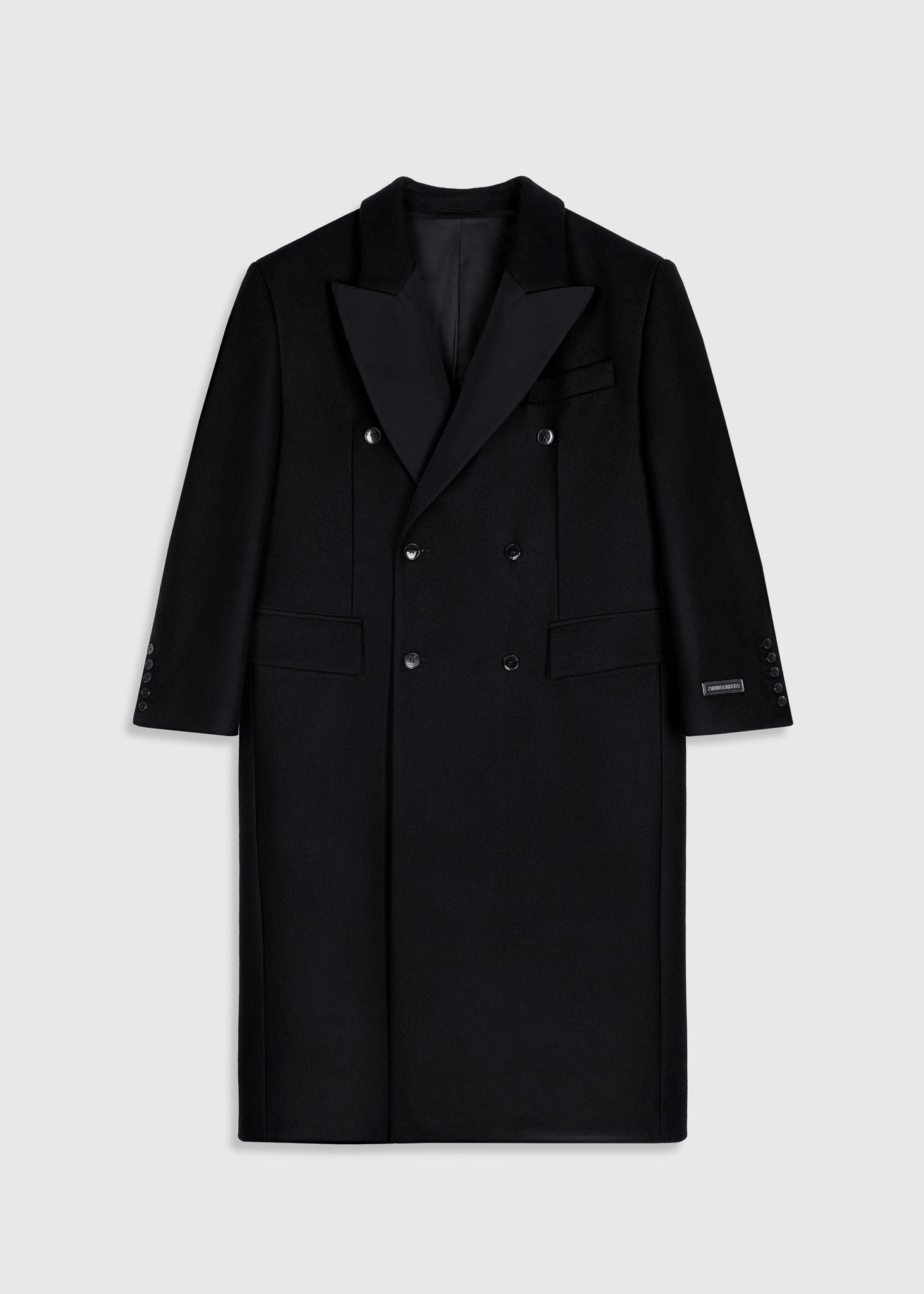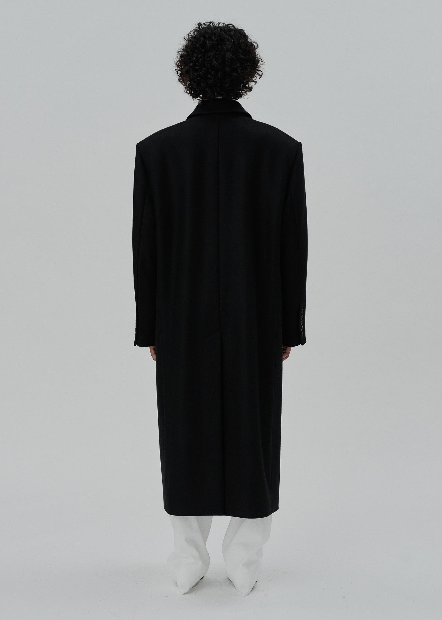 Schwerer doppelreihiger oversized Mantel der in Perfektion vom Design über die Schnitterstellung bis hin zur Fertigung konzipiert wurde. Der klassische Zweireiher von ZWINGENBERG in einer übergroßen Form reicht bis zum Knöchel und hat Logo Knöpfe, ein mit Tech Material besetztes Revers und scharfe Schultern, die den Look charakterisieren. Der Mantel ist limitiert, denn er wurde aus hochwertigster Deadstock Wolle aus Italien hergestellt.