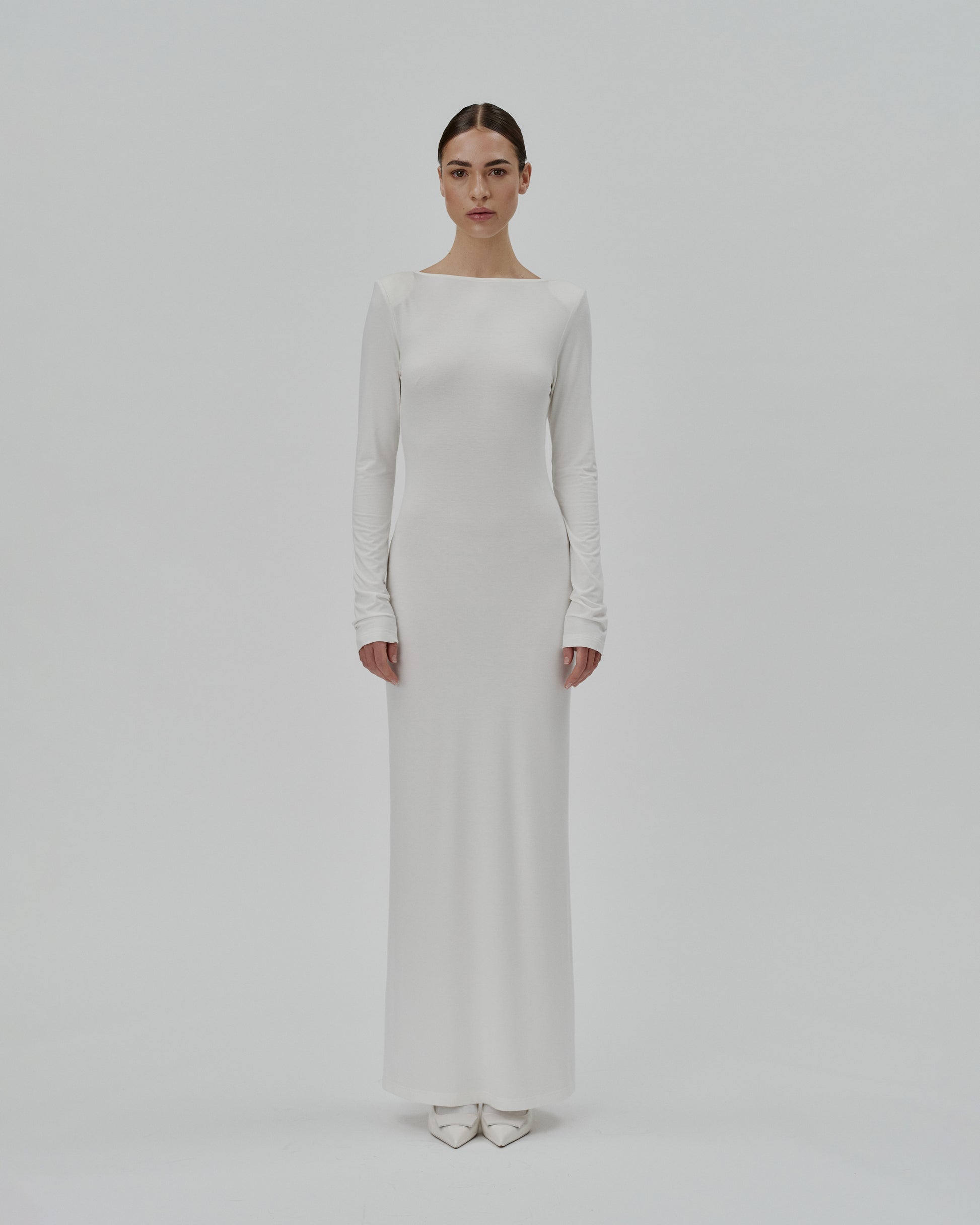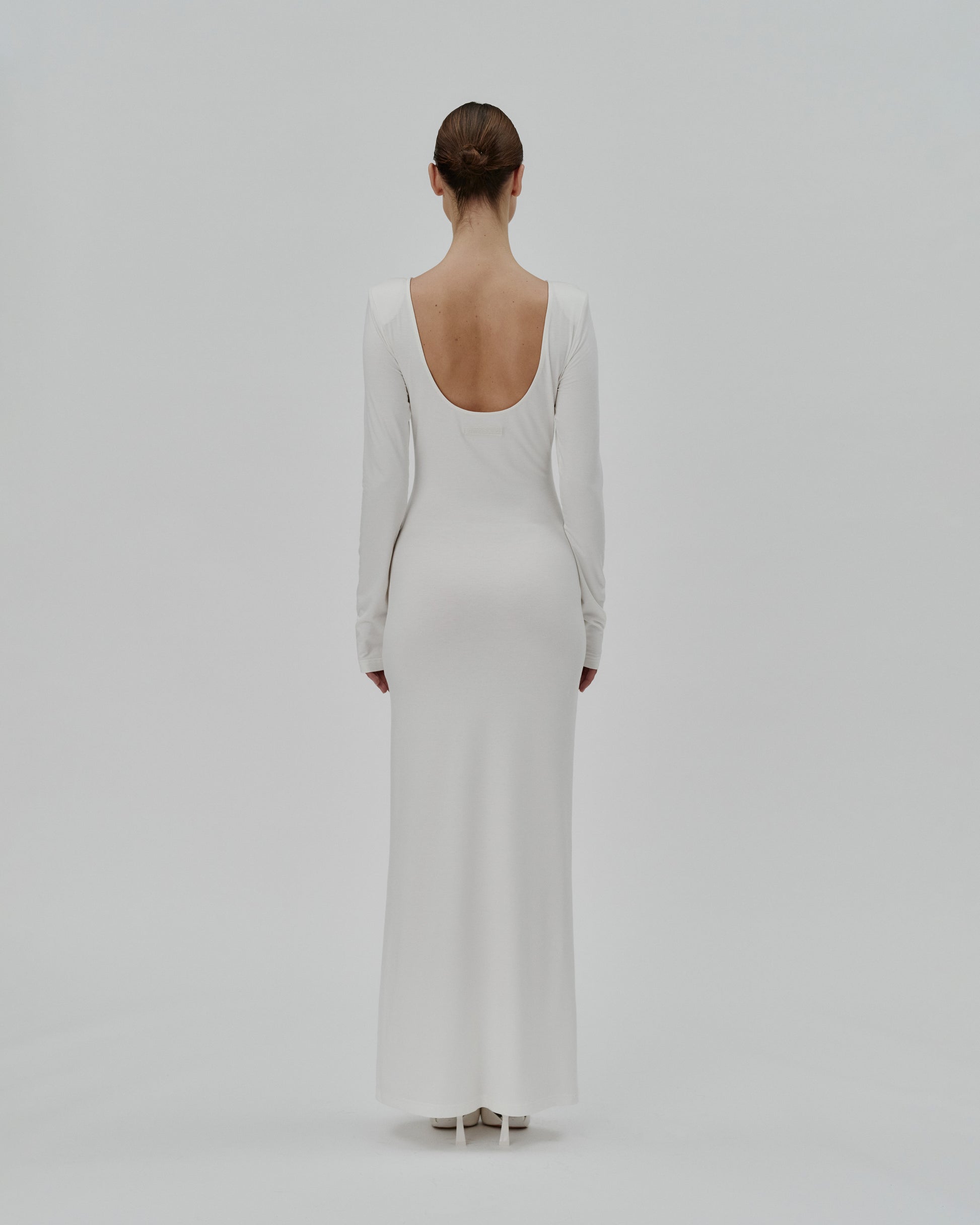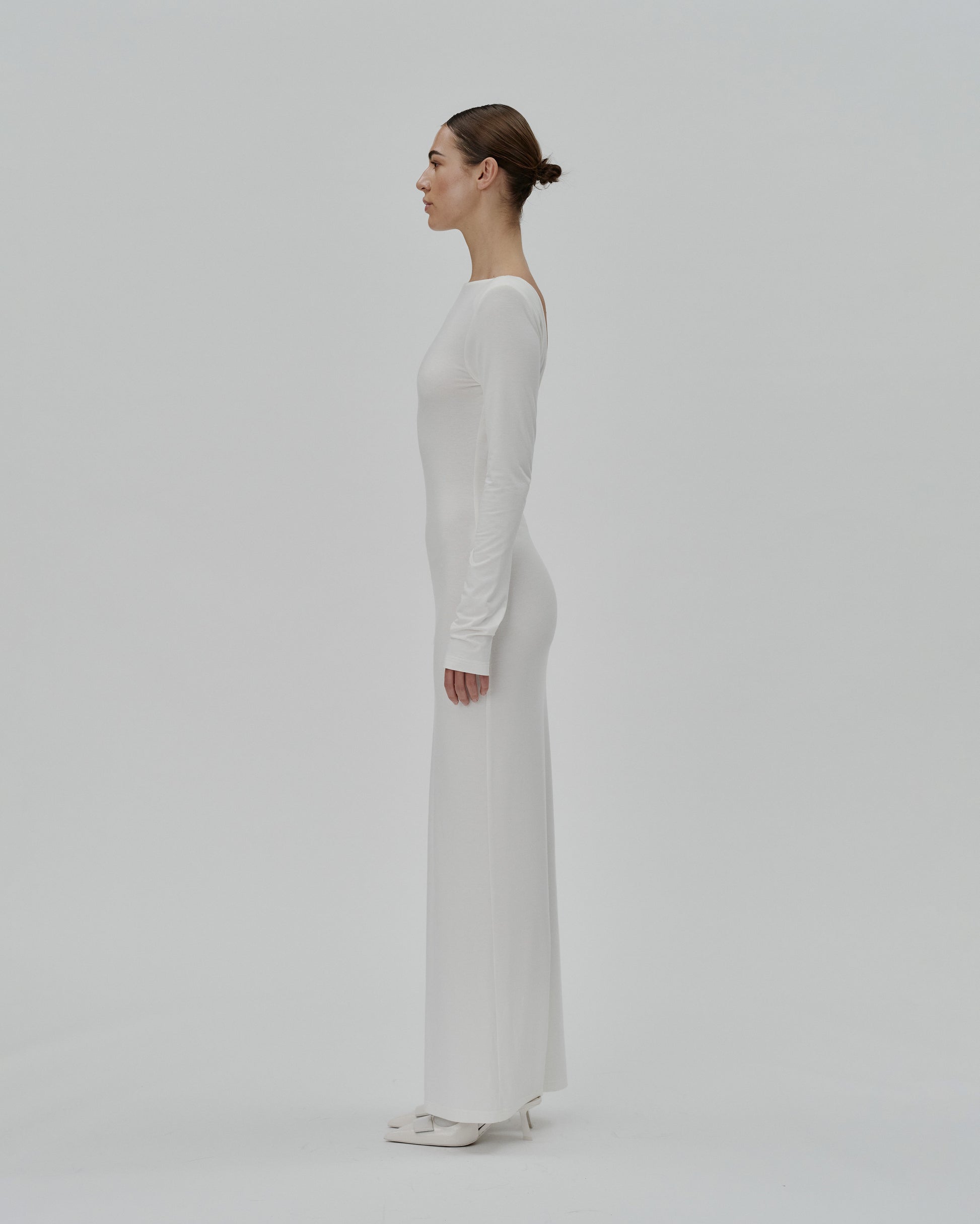 The Dress (1) ist zeitlose, minimalistische Eleganz von ZWINGENBERG. Das Kleid ist aus weichem, seidigen italienischen 300 Gramm schwerem Viskosejersey gefertigt um den Körper elegant zu umspielen. Charakteristisch ist für The Dress (1) die gepolsterte Schulterpartie und der Rückenausschnitt geziert vom recycelten transparenten ZWINGENBERG Patch.
