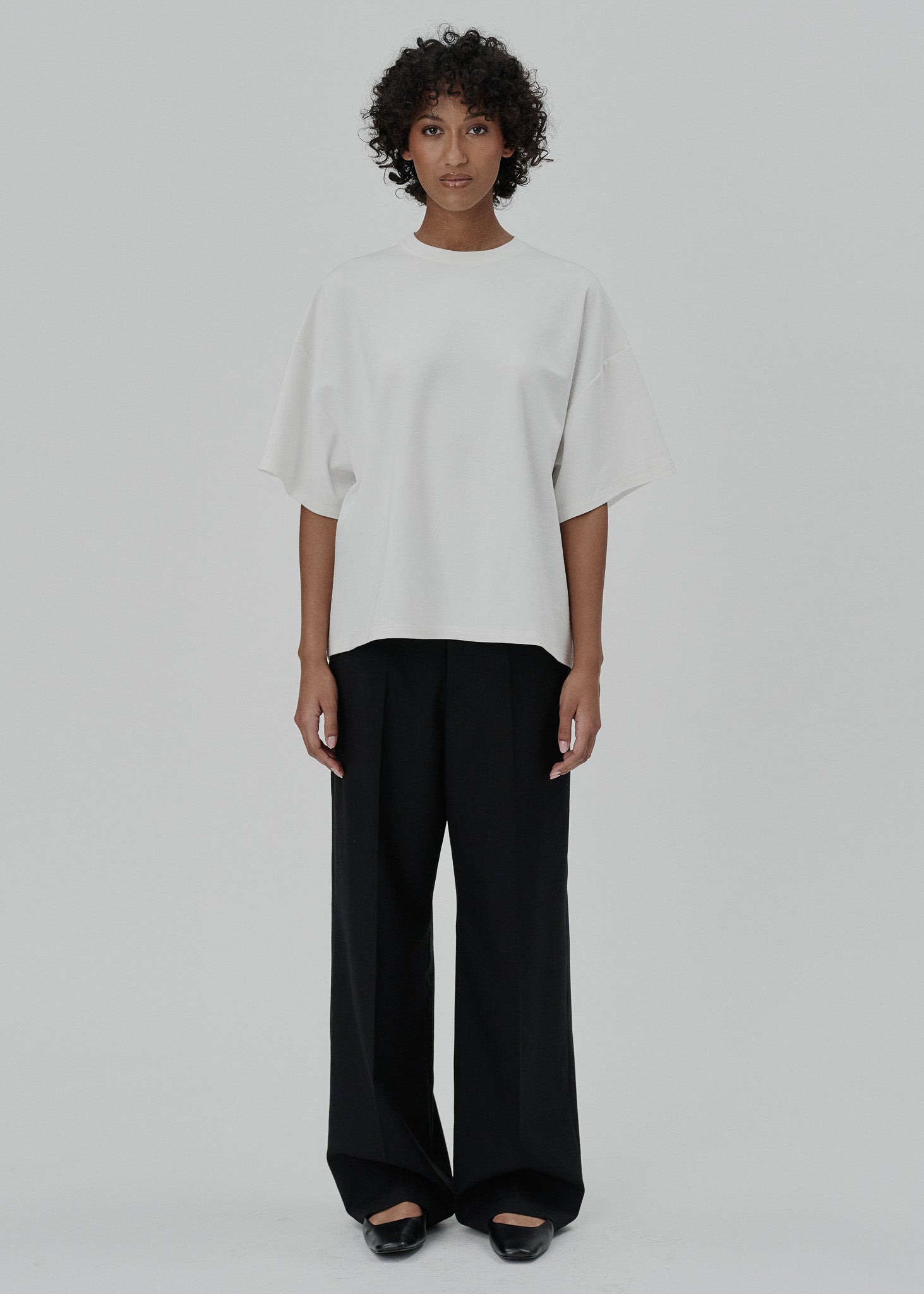 Boyfriend inspirierte Anzughose von ZWINGENBERG mit mittelhohem Bund, weitem Bein, tieferen Schritt und Bügelfalte. Die Hose gibt einen mühelosen entspannten, zeitlosen aber trotzdem feinen Tailoring Look. Abgerundet wird die Hose durch das recycelte transparente ZWINGENBERG Patch hinten. Hergestellt in unserem Atelier in Deutschland aus 100% italienischer Schurwolle in feinster Qualität.