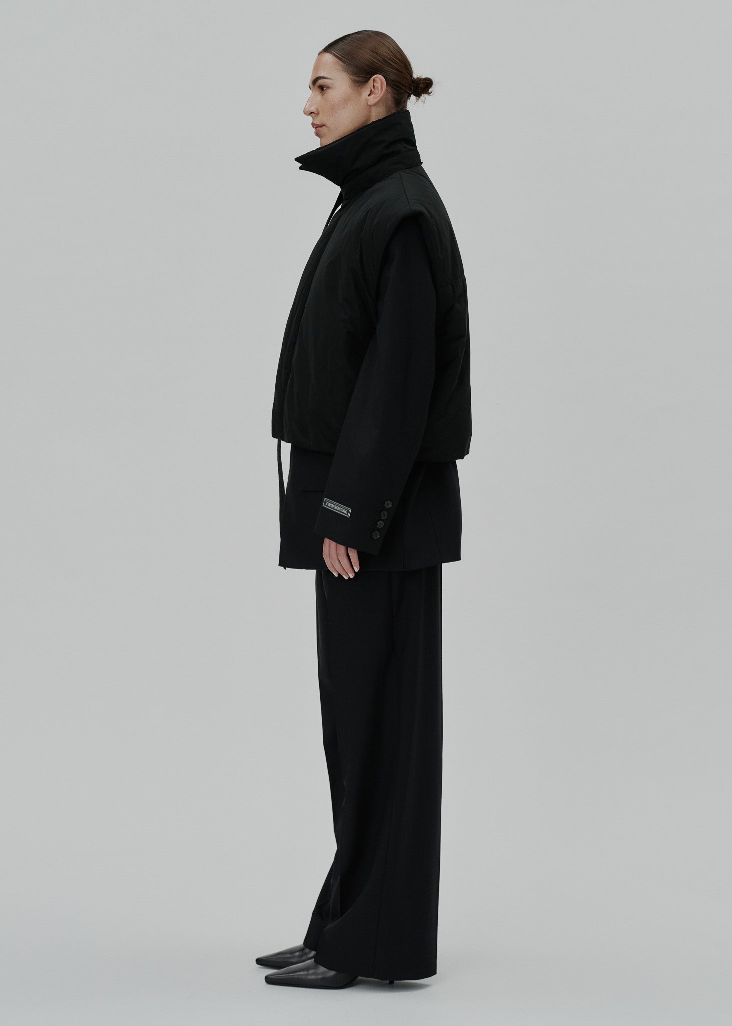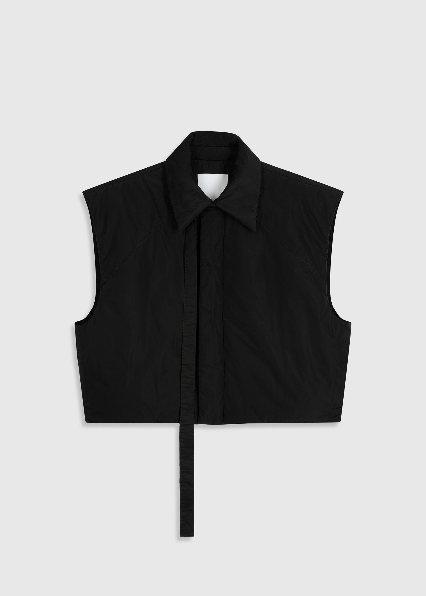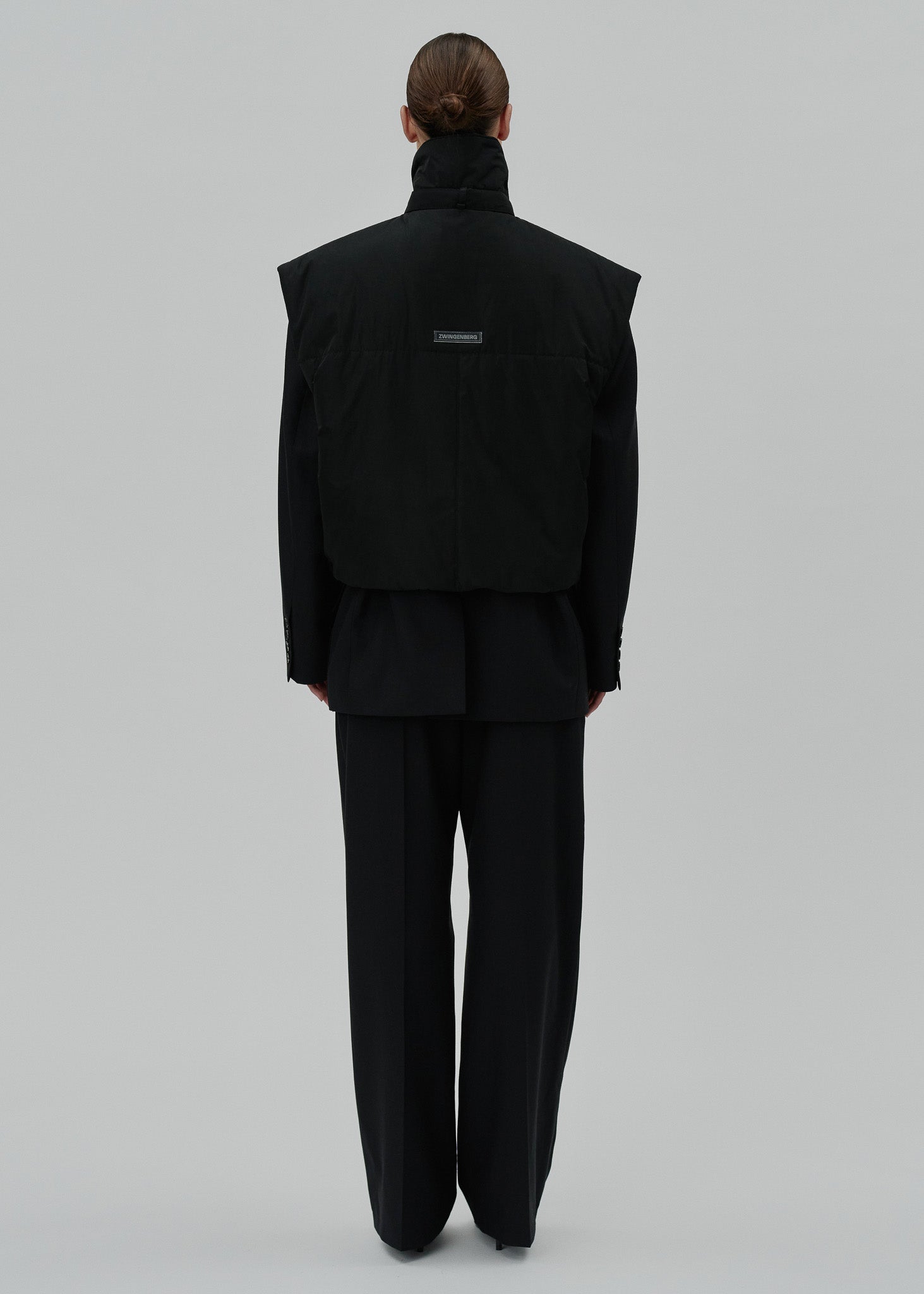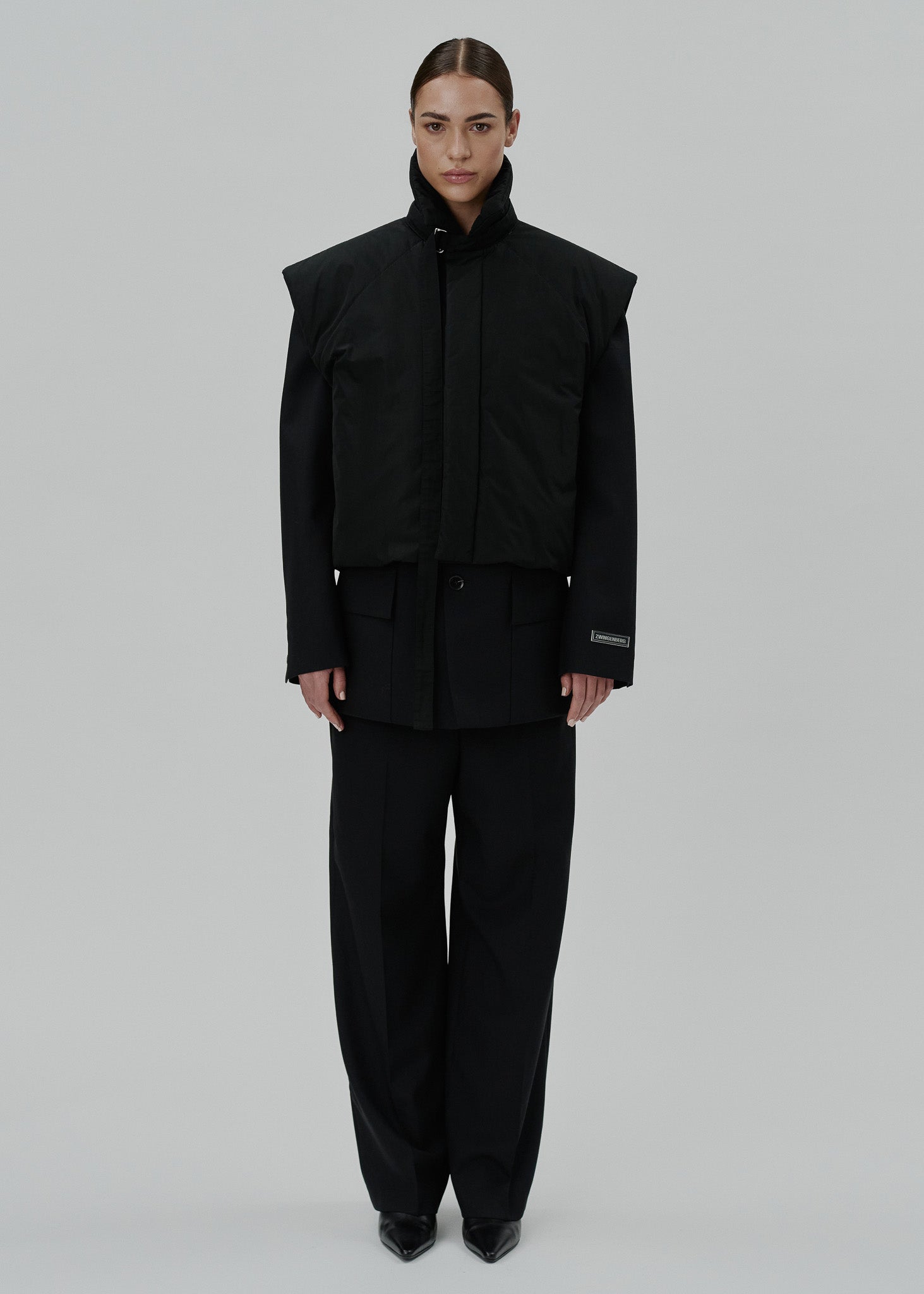 Die wattierte Weste ist designed für den perfekten ZWINGENBERG Layering Look. Die Weste soll oversized über Tailoring Pieces wie The Blazer, The Shirt oder auch über das T-Shirt getragen werden um einen modernen Look zu erzielen. Hergestellt aus technischem italienischem Deadstock Material ist dieser Style streng limitiert. Die Weste verfügt über eine auffällige Passe und tiefe Armlöcher. Die verdeckte Knopfleiste mit Druckknöpfen endet oben raffiniert mit einer Schlaufe in 2 Ringen.